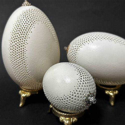 Oeufs d'oies sculptés peints Oeufs d'oies sculptés by Anna Sell, artiste Polonaise, me contacter pour disponibilités et prix Oeufs d'oies sculptés by Anna Sell, artiste Polonaise, me contacter pour disponibilités et prix Oeufs de poules ou d'oies traditionnels inspirés de la faïence de Wloclawek, village Polonais, by Krystyna Zagrabska Oeufs d'oies dentelle, me contacter pour disponibilité et prix Oeufs style Fabergé, poules, oies, me contacter pour disponibilité et prix Oeuf bois peint traditionnel Russe 14 cm sur son support, 80 € frais de port compris Oeufs de poule Pisanky de Roumanie, 25€ l'oeuf au choix port compris Oeufs de poules Pisanky de Roumanie, au choix 25€ pièce port compris Inclusions et tissages 230€ Oeuf sortant d'un oeuf en fer 120€ Inclusion d'un oeuf d'oie sculpté dans un oeuf d'autruche découpé peint 240€ Oeuf d'autruche gravé déco tribale 230€ Tableau demi-oeuf d'autruche gravé et éclairé de l'intérieur 250€ Sculpture Oeuf et ses pétales 220€ Oeuf d'oie avec inclusions, aspect vieilli sur son support 120€ Oeuf d'oie peint inspiration très moderne 110€ Oeuf comme une fleur et ses pétales 210€ Ballon de rugby, oeuf d'autruche, 150€ Cadre demi-oeuf d'autruche gravé peint 220€ Sculpture oeuf autruche vieilli inspiration harpe 210€ Coffret oeuf d'autruche inspiration asiatique 195€ Coffret oeuf d'autruche peint 195 € Coffret oeuf de nandou couché délicatement peint 240€ Oeufs bois peints style Pisanky Ukrainien, marron 6 cm 35€, boite bijoux 13 cm 80€, coq 8 cm 60€ Oeuf d'autruche sculpté motifs géométriques intemporel, sur tube lumineux noir 210 € Oeuf d'autruche sculpté motifs floraux vintage sur tube lumineux noir 210€ livré en France Oeuf d'autruche gravé sculpté papillons sur tube lumineux moderne noir 210€ Oeuf d'autruche sculpté teinté sépia sur tube lumineux 210€ Oeufs d'autruche sculpté teinté noir sur tube lumineux moderne noir 210€ Oeufs d'autruche sculptés décoratifs sur.petit support bois unitaire 180€ Duo d'œufs de poules peints déco traditionnel Pisanky 85€ Oeuf d'autruche couché sculpté fleurs 210€ Oeufs d'autruche lampes sur supports tubes différents coloris 210 € Splendide oeuf d'oie peint paysage sur son pied métal doré, réalisé par Brigitte 75€ Oeuf d'autruche peint Masque Africain et son support en chêne fumé 200 € Oeuf d'autruche peint décor Africain sur son socle noir 85 € Oeuf d'autruche peint Africain et ses masques sur son support en merisier 180 € Coffret Fabergé, oeuf d’oie peint rose sur pieds, réalisé par Brigitte, 85 € Oeuf d'autruche sculpté d’un décor équestre sur support bois pommier et son coffret, réalisé en Italie, 250 € Oeuf d’autruche sculpté de motifs floraux sur socle bois, décoratif, réalisé par Isabelle Franconie 150 € Oeuf d’autruche, décor Carpes koï, sculpté et gravé, réalisé par Isabelle Franconie sur support bois chêne fumé 280 € Oeuf d'oie sculpté sur support bois, réalisé par Isabelle Franconie 85 € Coffret style Fabergé réalisé par Jean François, oeuf d'émeu couché sur socle, capitonné de velours 220 € Duo d’oeufs en bois peints de motifs traditionnels Pisanky, d’origine Tchèque, Prague, 85 €