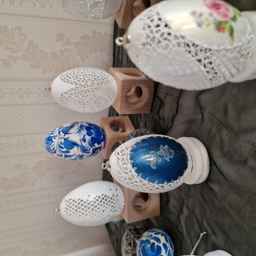 Justyna Golen est Polonaise, elle s'inspire pour sculpter ses oeufs d'oies de motifs traditionnels de dentelle et de broderie, vénitienne, anglaise...