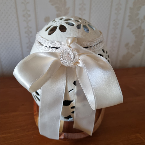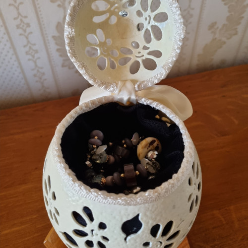Boite à bijoux réalisée dans un oeuf d'autruche sculpté par Isabelle