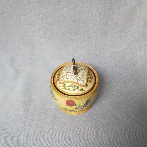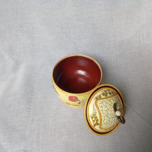 Splendide boite peinte d'inspiration asiatique avec ses grues japonaises, réalisée par Jean François