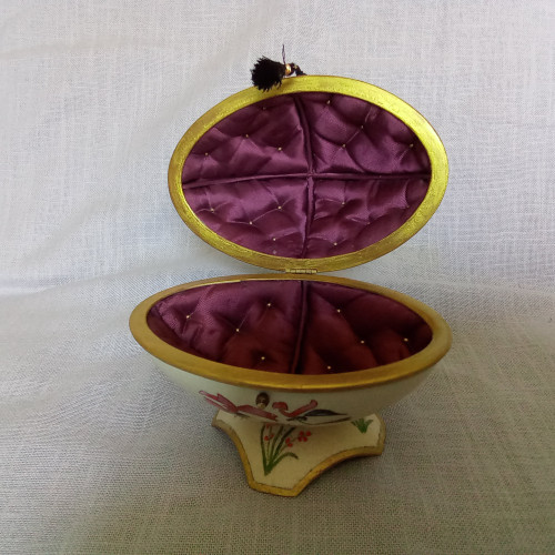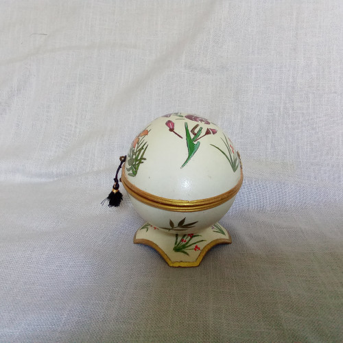 Coffret réalisé dans un oeuf de nandou couché, peint, par Jean François