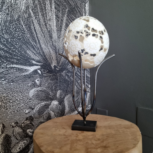 une dentelle sculptée et gravée dans un Oeuf d'autruche,