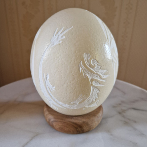 d'inspiration résolument asiatique ce dragon sculpté sur un oeuf d'autruche