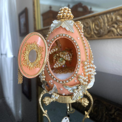 La délicatesse du style Fabergé par Leslie Lisdell sur oeuf d'oie, le style Fabergé un long temps abandonné, reprend ses lettres de noblesse grâce à des artistes plus inventifs et talentueux les uns que les autres
