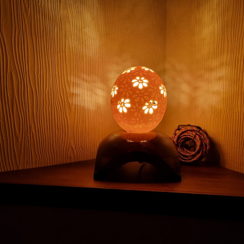Petites fleurs gravées et sculptées de façon éparse sur l'oeuf,