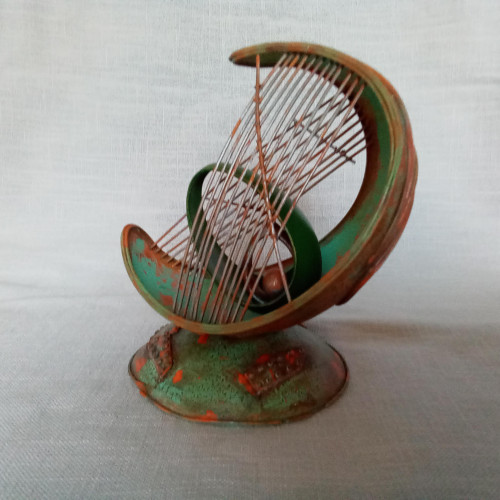 Oeuf d'autuche torturé, découpé, collé, peint, par Jean François qui réalise là une prouesse de créativité,