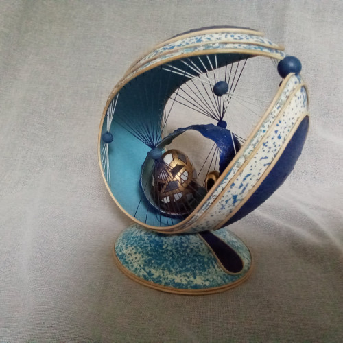 Magistrale oeuvre d'inclusions d'oeufs dans un oeuf d'autruche découpé qui semble retenus par des fils aériens, splendide création originale par Jean François