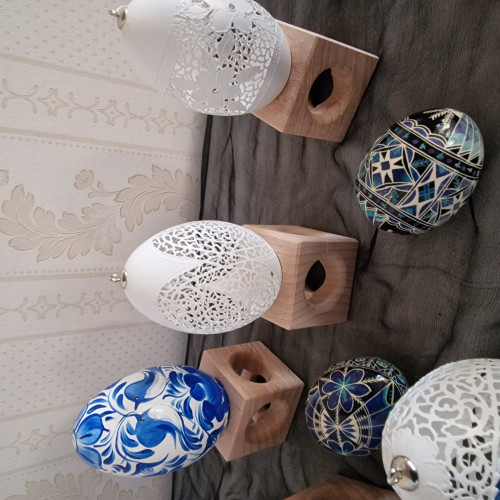 Justyna Golen est Polonaise, elle s'inspire pour sculpter ses oeufs d'oies de motifs traditionnels de dentelle et de broderie, vénitienne, anglaise...