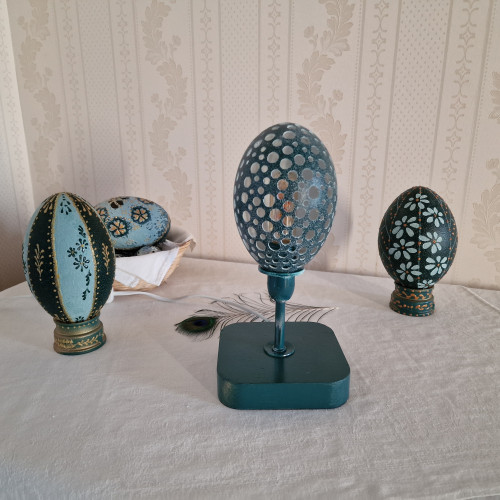 Originale, unique et insolite lampe réalisée en Oeuf d'émeu sculpté