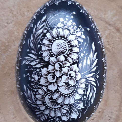 Concernant les oeufs d'émeux, encore plus facile ! les oeufs d'émeux sont naturellement colorés, de couleur allant du noir profond au bleu au vert. La couleur naturelle de l'oeuf sans teinture ni peinture, permet donc au grattage plus ou moins profond, d'obtenir un dégradé de couleurs dans les tons noirs/bleus/verts.