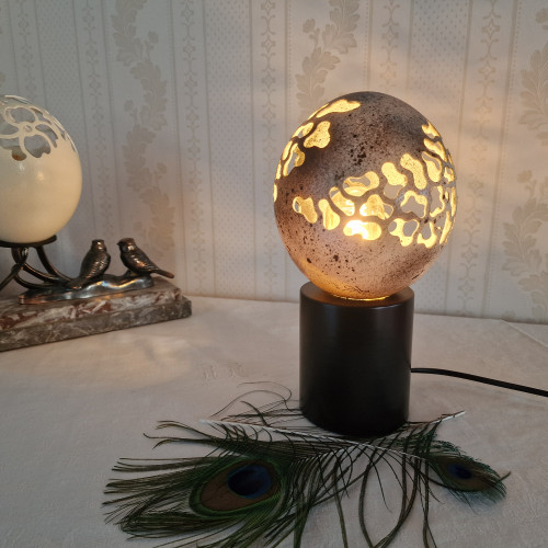 Oeuf d'autruche sculpté peint noir sur tube moderne noir