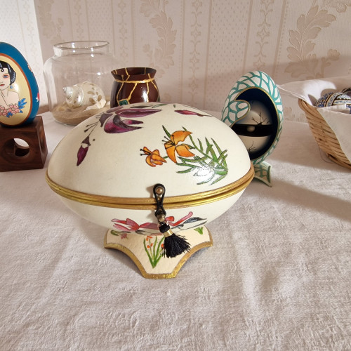 Les oeufs d'émeu ou de nandou se prêtent à merveille à la confection de coffrets de Style Fabergé