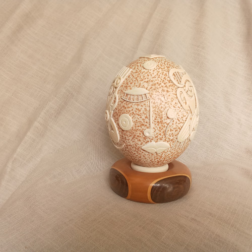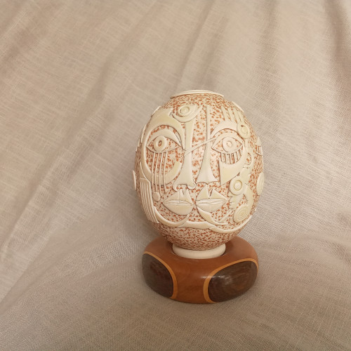 Oeuf Totem réalisé par Jean François, inspiration ethnique